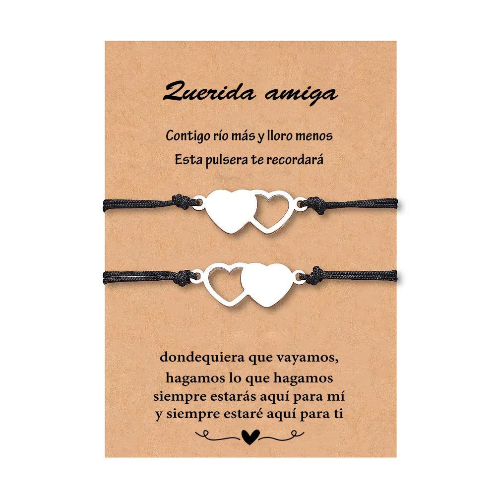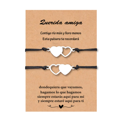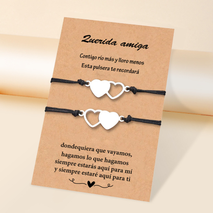 Querida amiga-Pulsera para amiga de dos corazones conectados con tarjeta amorosa