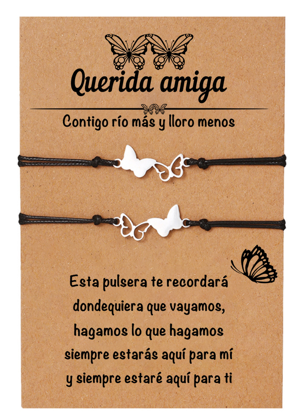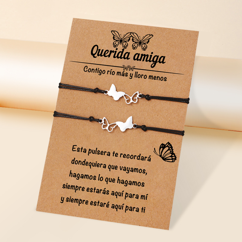 Querida amiga-Pulsera para amiga de dos mariposas con tarjeta amorosa