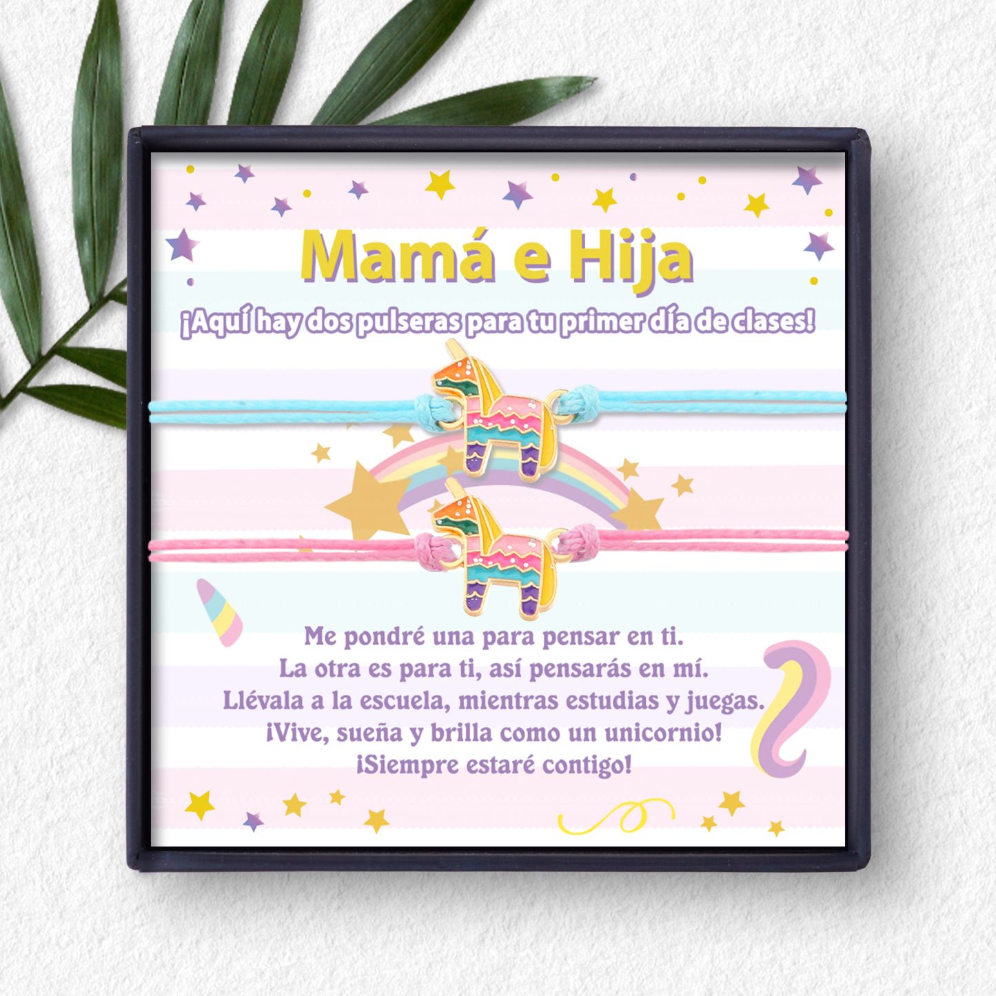 Unidad de 2 pulseras de unicornio con caja mamá e hija - Regalos de regreso a la escuela