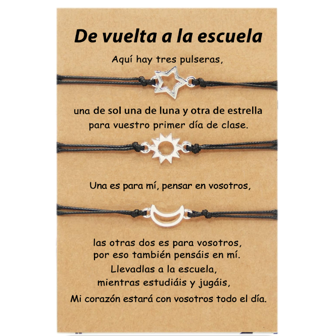 Unidad de 3 pulseras de sol, luna, estrella - Regalos de regreso a la escuela