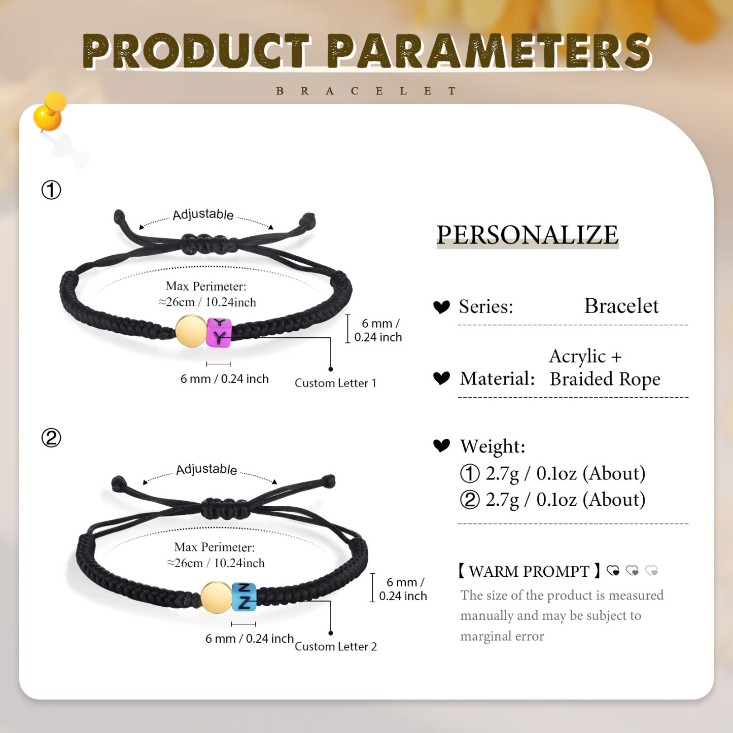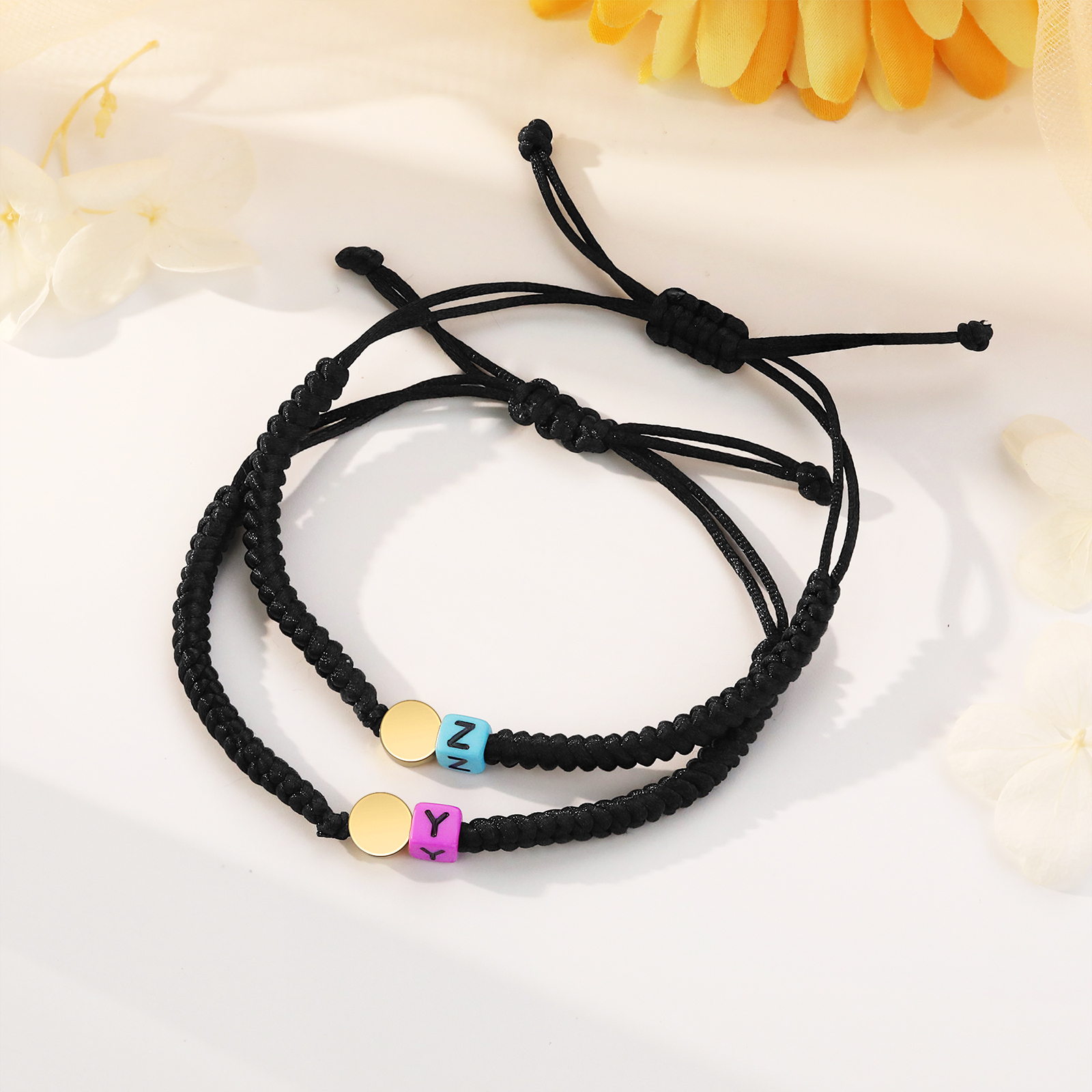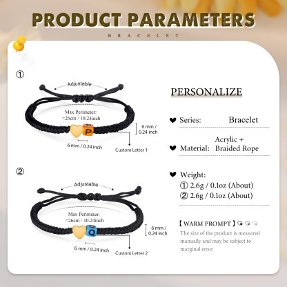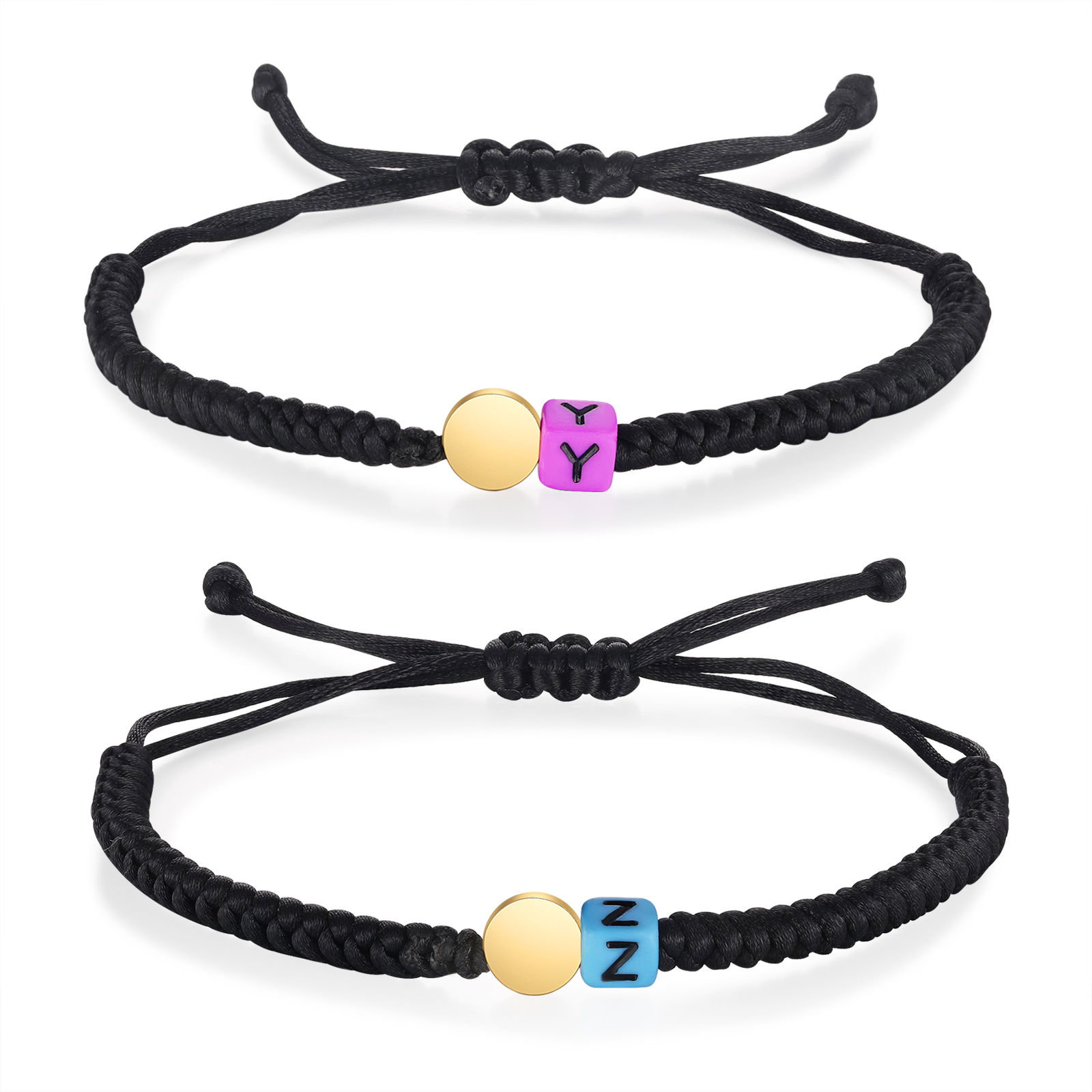 Unidad de pulseras ajustables con 2 letras personalizadas para padres e hijos o amigas o hermanas
